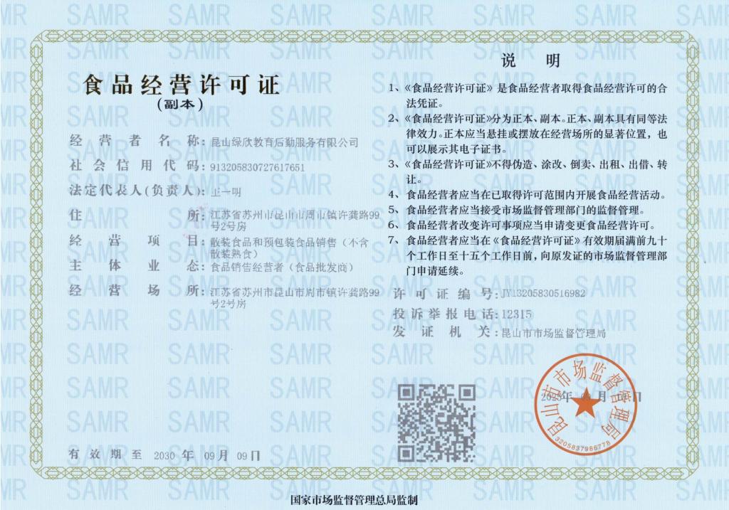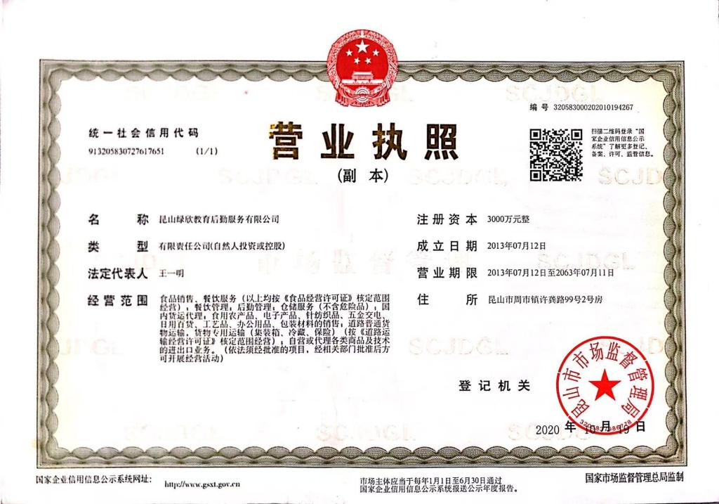 1.生鲜综合供货商资质信息—昆山绿欣教育后勤服务有限公司