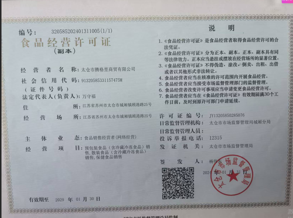 4.乳制品货商资质信息—太仓市腾格里商贸有限公司