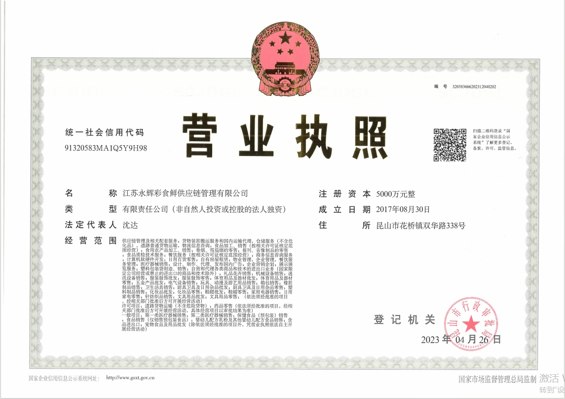 1.生鲜综合供货商资质信息—江苏永辉彩食鲜供应链管理有限公司