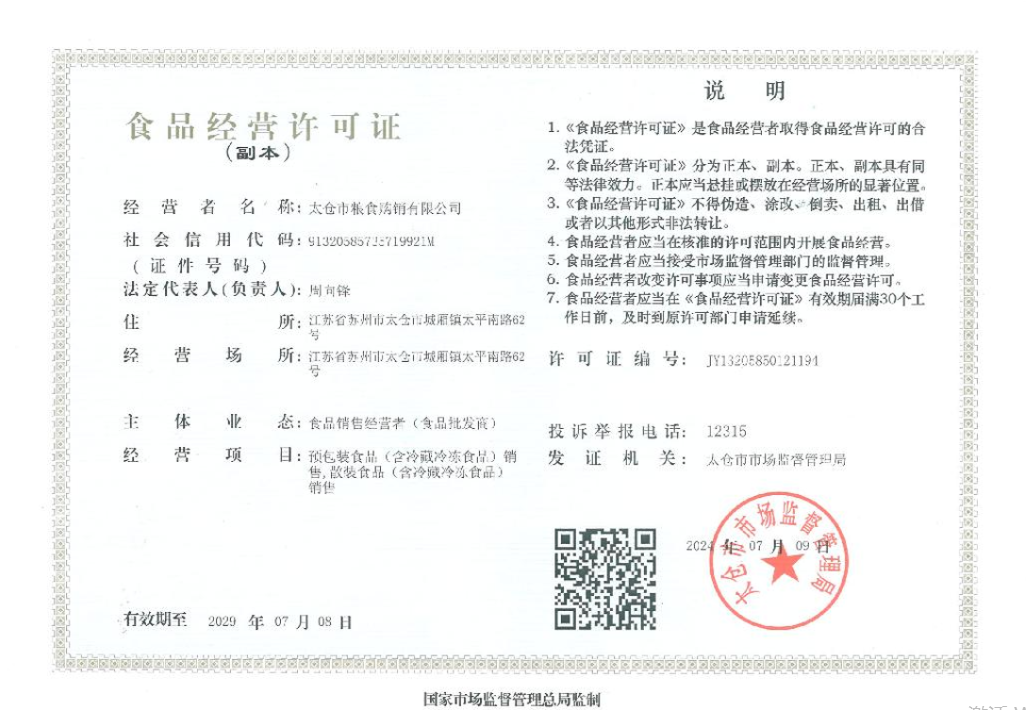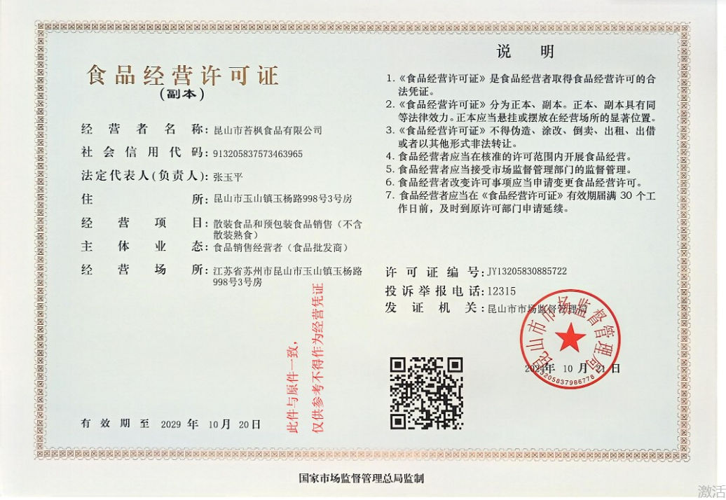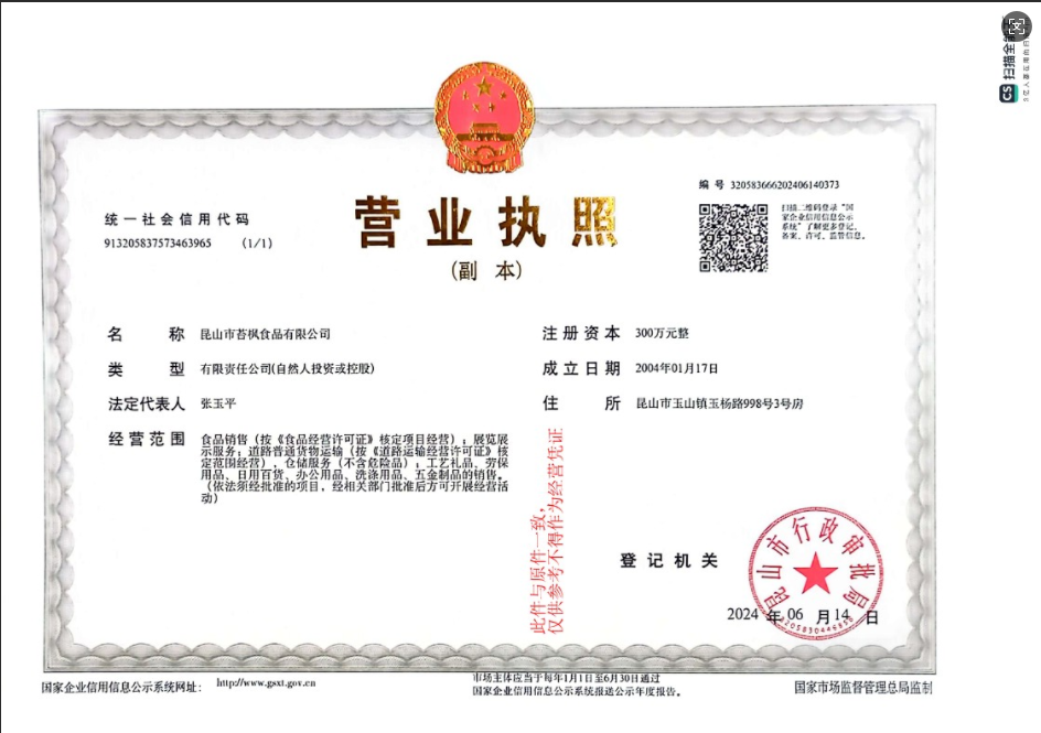 3. 食用油供货商资质信息—昆山市苔枫食品有限公司