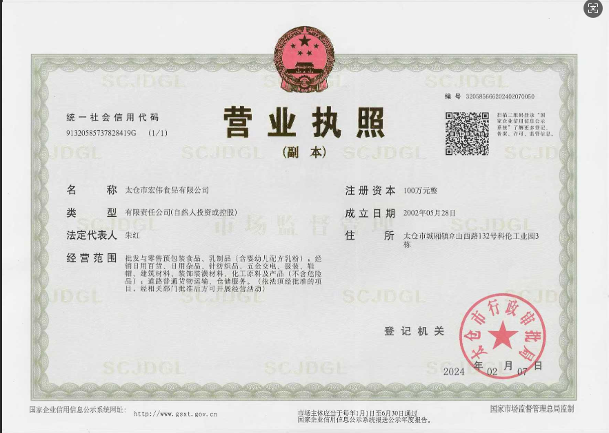 4.乳制品供货商资质信息—太仓市宏伟食品有限公司