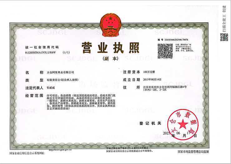 1. 生鲜综合供货商资质信息—太仓阿张果业有限公司