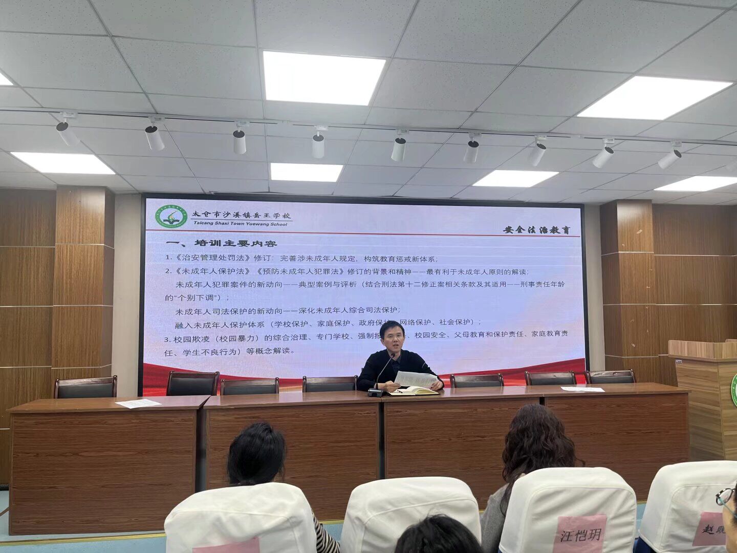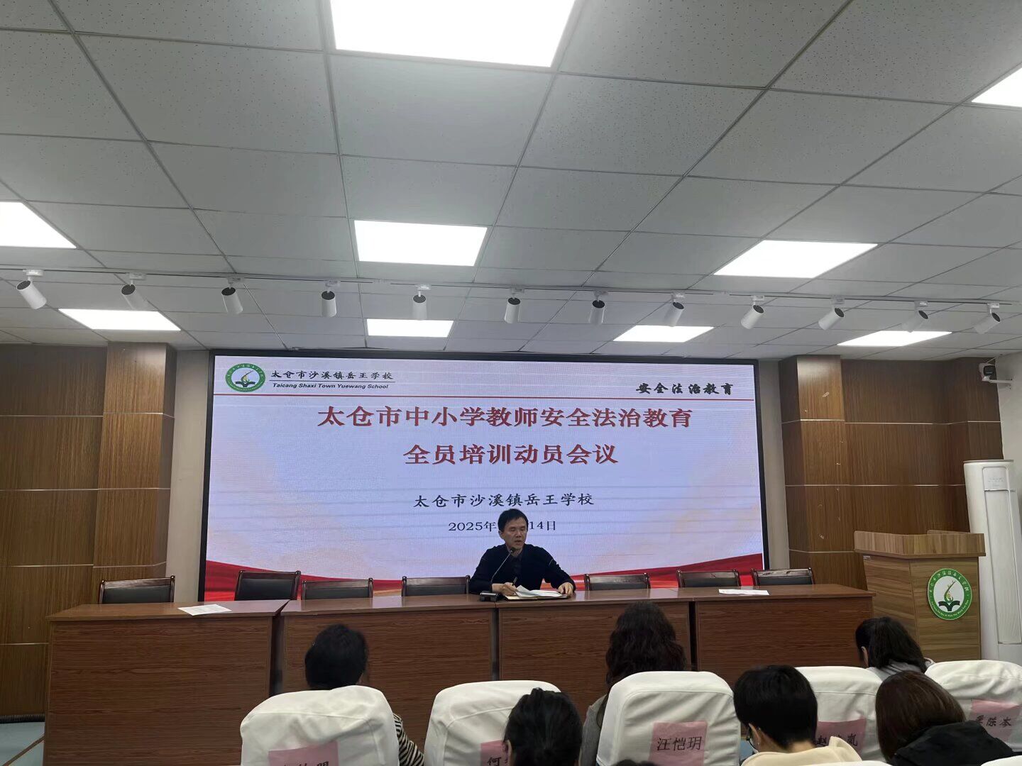 为强化教师安全法治教育能力,筑牢未成年人保护防线,2025 年 11 月 14 日,太仓市沙溪镇岳王学校启动中小学教师安全法治教育全员培训动员会议。本次培训为全校教师送上系统全面的法治教育 "必修课"。