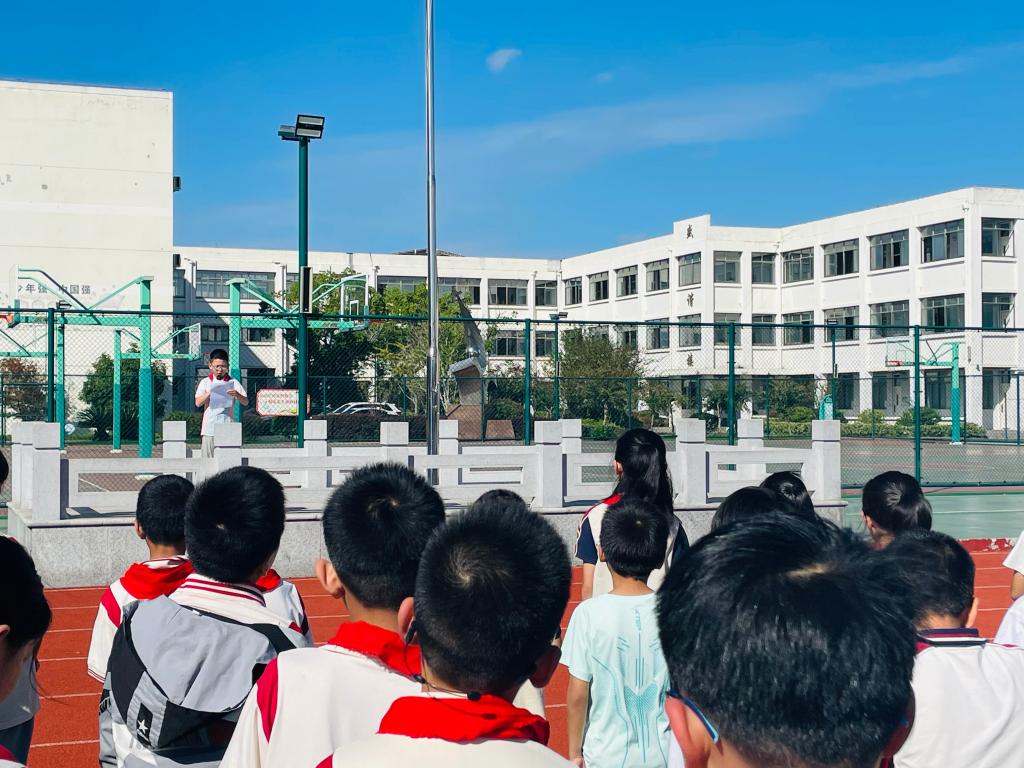 2025年9月22日,岳王学校全体师生在操场参加了岳王学校第4周升旗仪式。