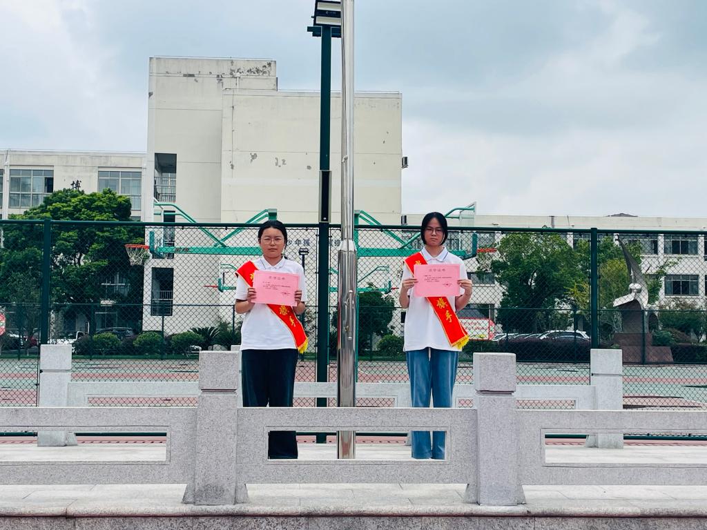 首先,初二(2)班的张悦、宗鑫愉两位同学担任升旗手升旗,王晓峰副书记为升旗手颁发了“光荣升旗手”荣誉证书。