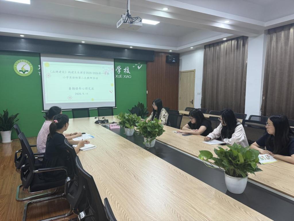 9月11日下午,小学部英语组开展本学期第二次教研活动。本次教研活动的主题是暑期读书心得交流活动。组内成员分享了自己关于人工智能教育理论应用于小学英语教学的读书感想。