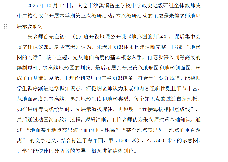 (品牌建设)构建生长课堂2025-2026第一学期中学政史地组第三次教研活动——朱健老师校内公开课及研讨
