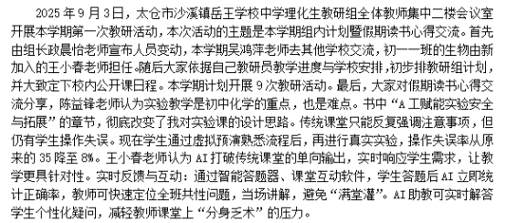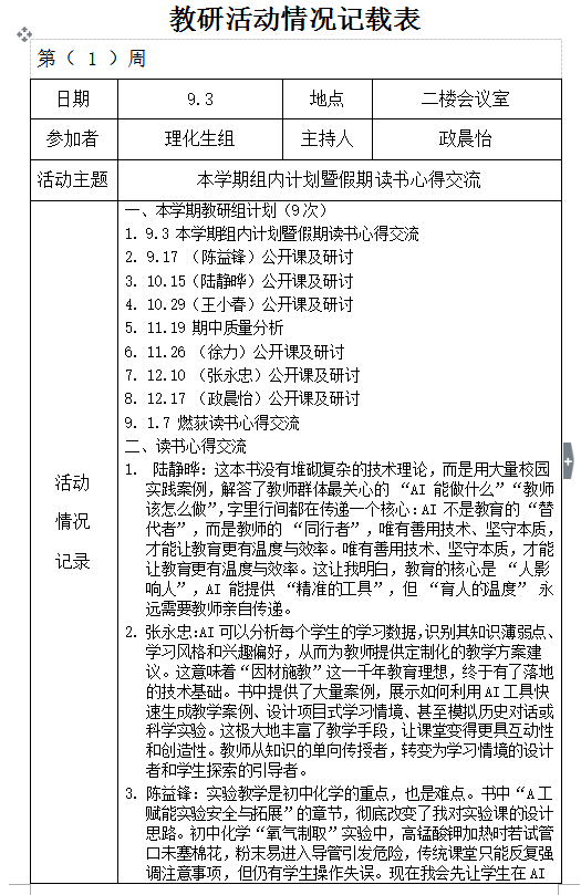 (品牌建设)构建生长课堂2025-2026第一学期中学理化生组第一次教研活动——本学期组内计划暨假期读书心得交流