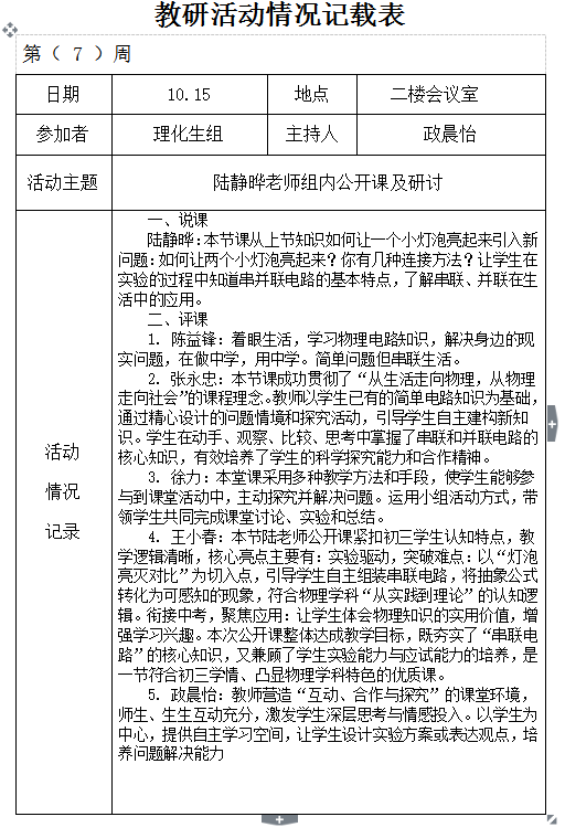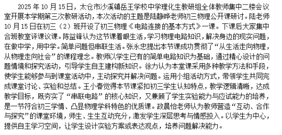 (品牌建设)构建生长课堂2025-2026第一学期中学理化生组第三次教研活动——陆静晔老师校内公开课及研讨