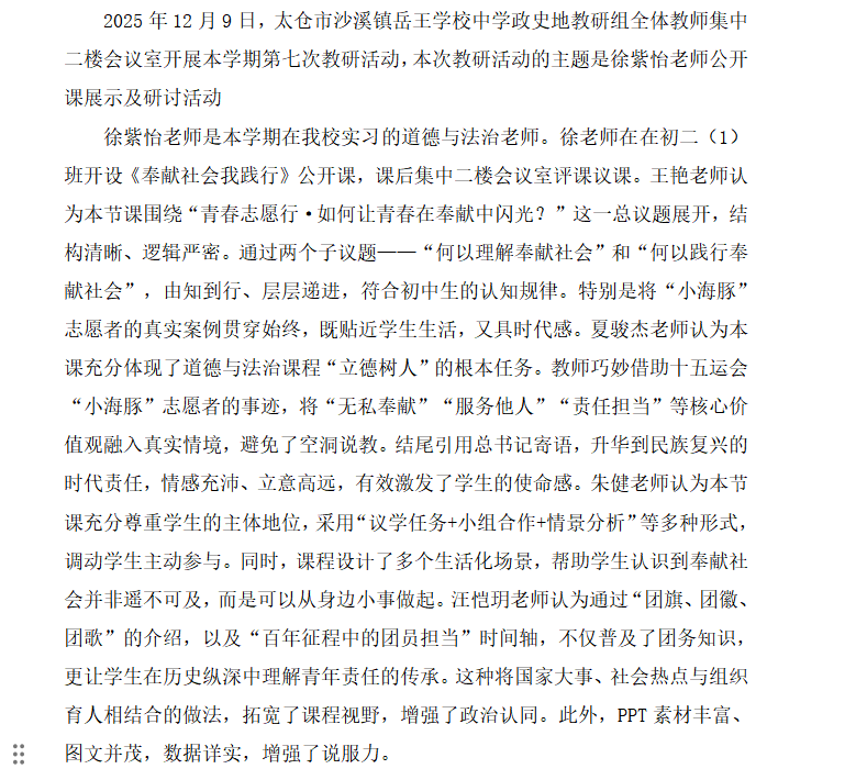 (品牌建设)构建生长课堂2025-2026第一学期中学政史地组第七次教研活动——徐紫怡老师校内公开课及研讨