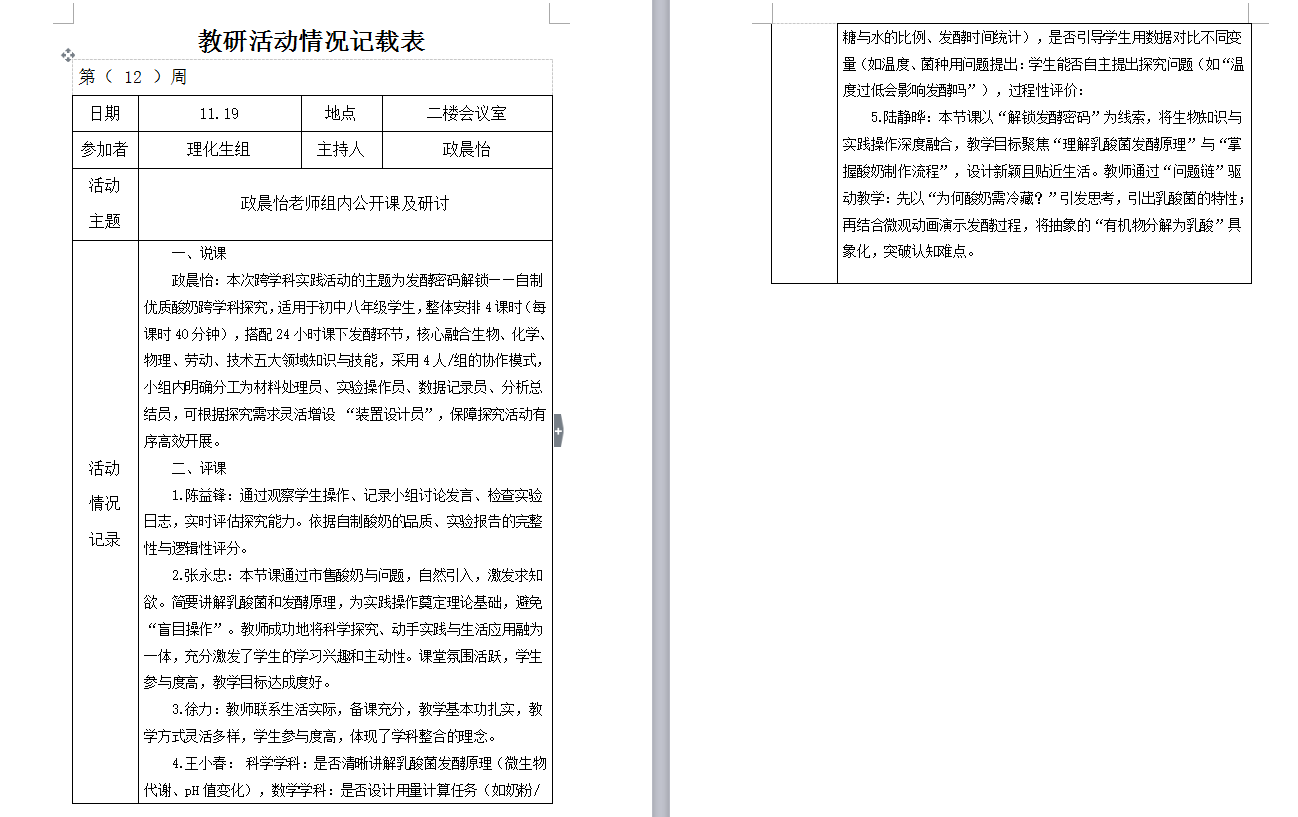 (品牌建设)构建生长课堂2025-2026第一学期中学理化生组第七次教研活动——政晨怡老师组内公开课及研讨