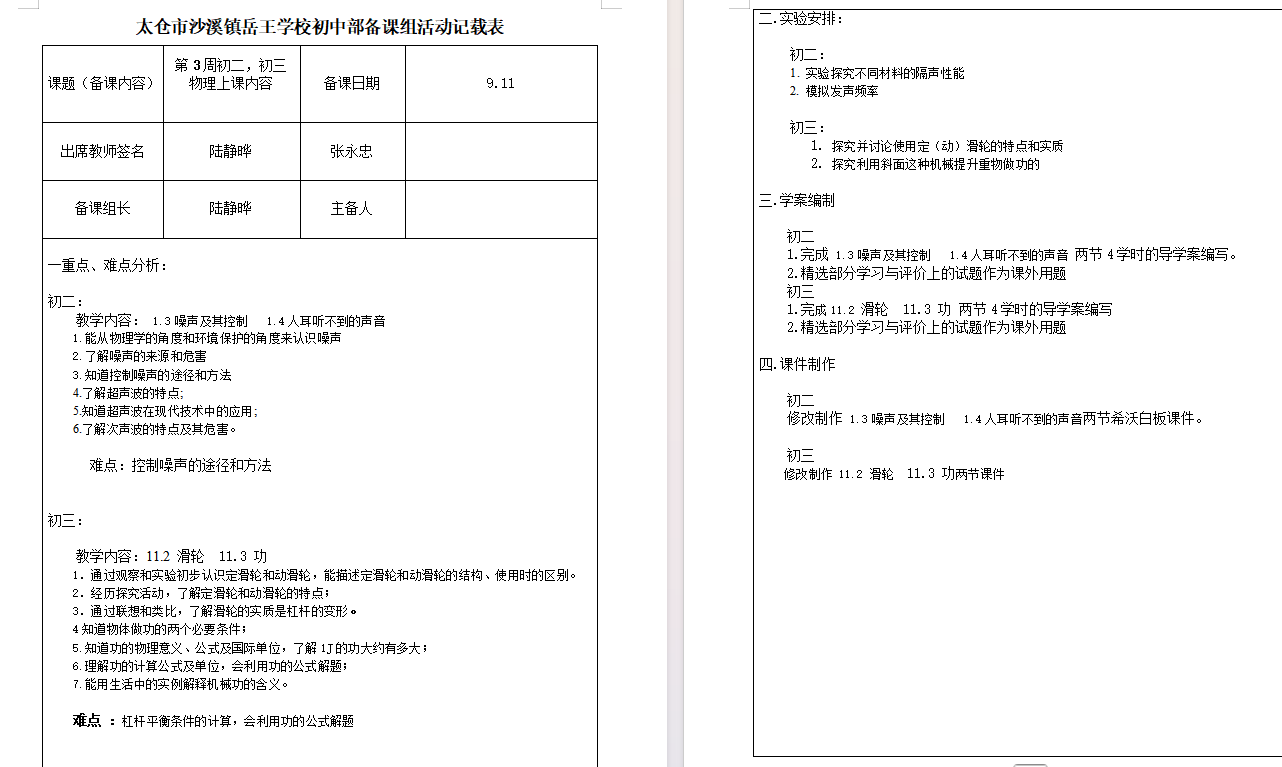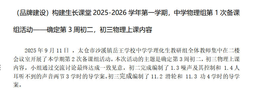 (品牌建设)构建生长课堂2025-2026学年第一学期,中学物理组第1次备课组活动——确定第3周初二,初三物理上课内容