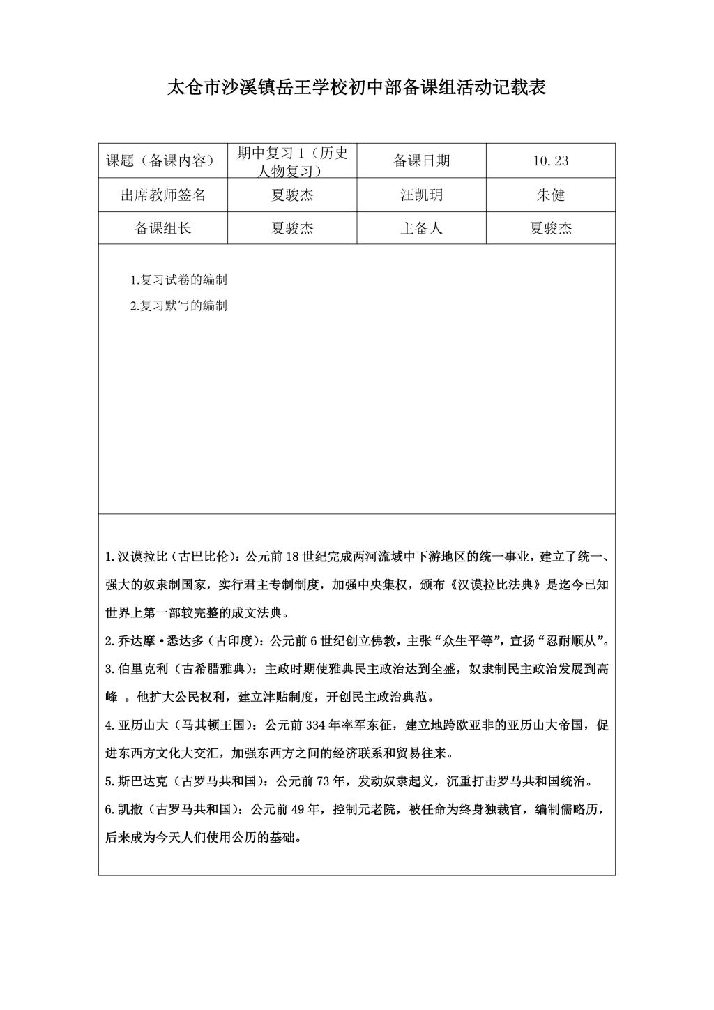 (品牌建设)构建生长课堂2025-2026第一学期,中学史地组第五次备课组活动——历史人物复习