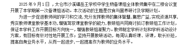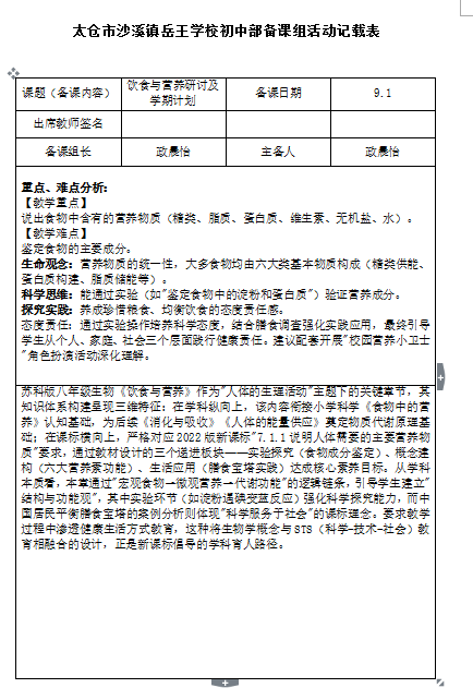 (品牌建设)构建生长课堂2025-2026第一学期,中学生物组第一次备课组活动——饮食与营养研讨及学期计划