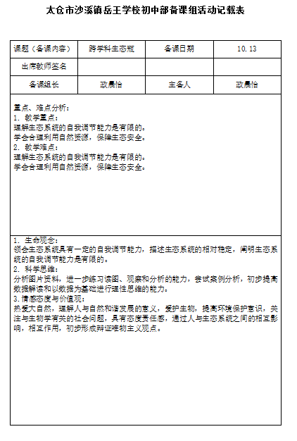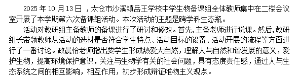 (品牌建设)构建生长课堂2025-2026第一学期,中学生物组第六次备课组活动——跨学科生态瓶