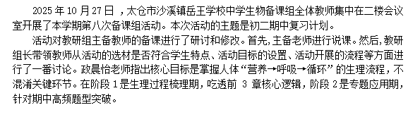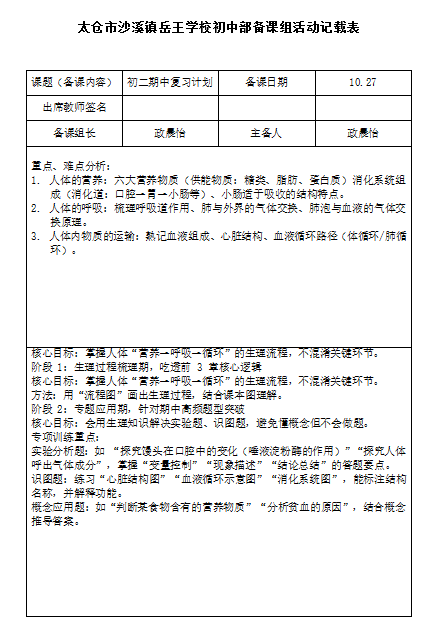 (品牌建设)构建生长课堂2025-2026第一学期,中学生物组第八次备课组活动——初二期中复习计划