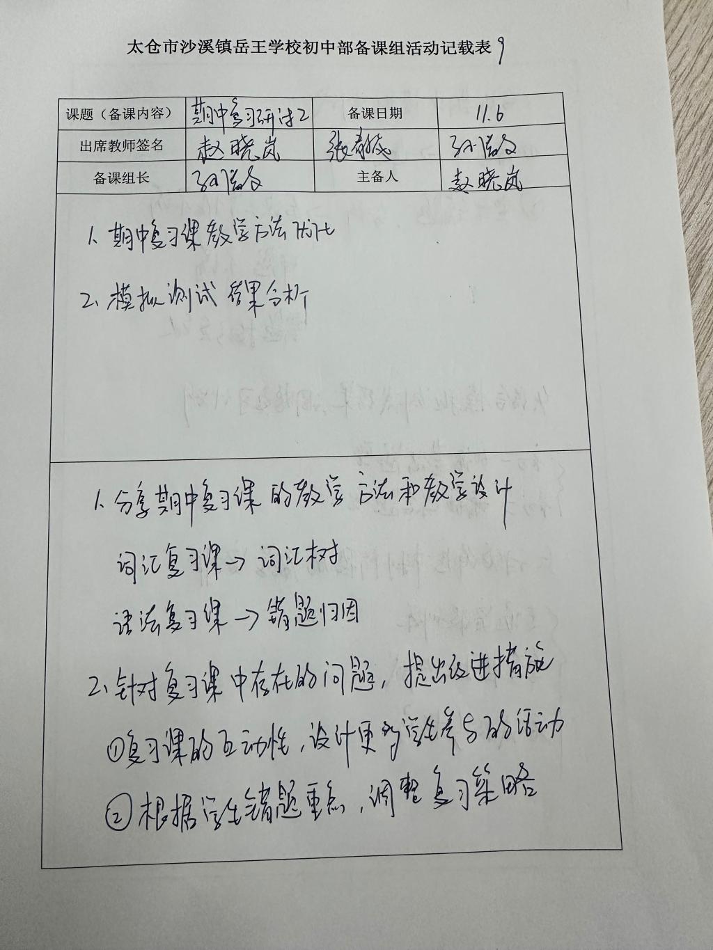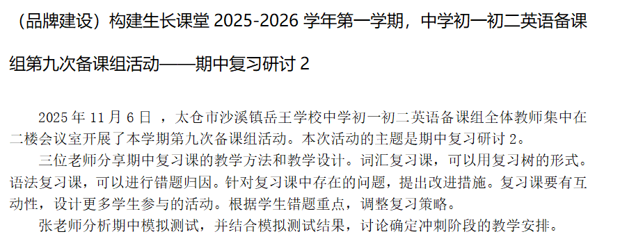 (品牌建设)构建生长课堂2025-2026学年第一学期,中学初一初二英语备课组第九次备课组活动——期中复习研讨2