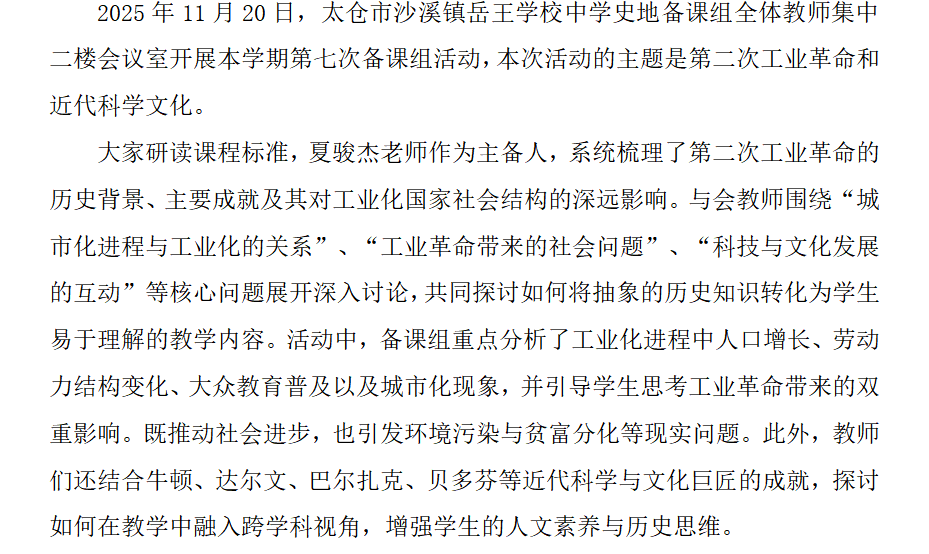 (品牌建设)构建生长课堂2025-2026第一学期,中学史地组第七次备课组活动——第二次工业革命和近代科学文化