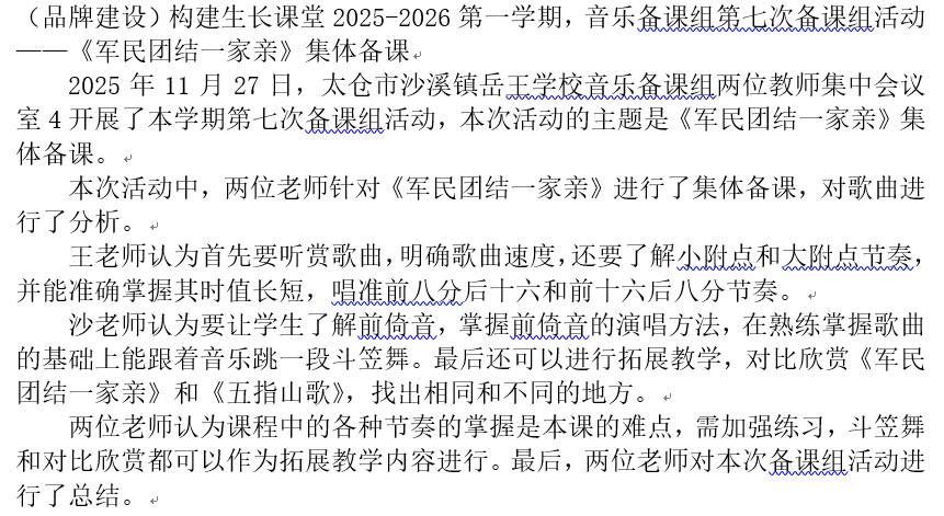(品牌建设)构建生长课堂2025-2026第一学期,音乐备课组第七次备课组活动