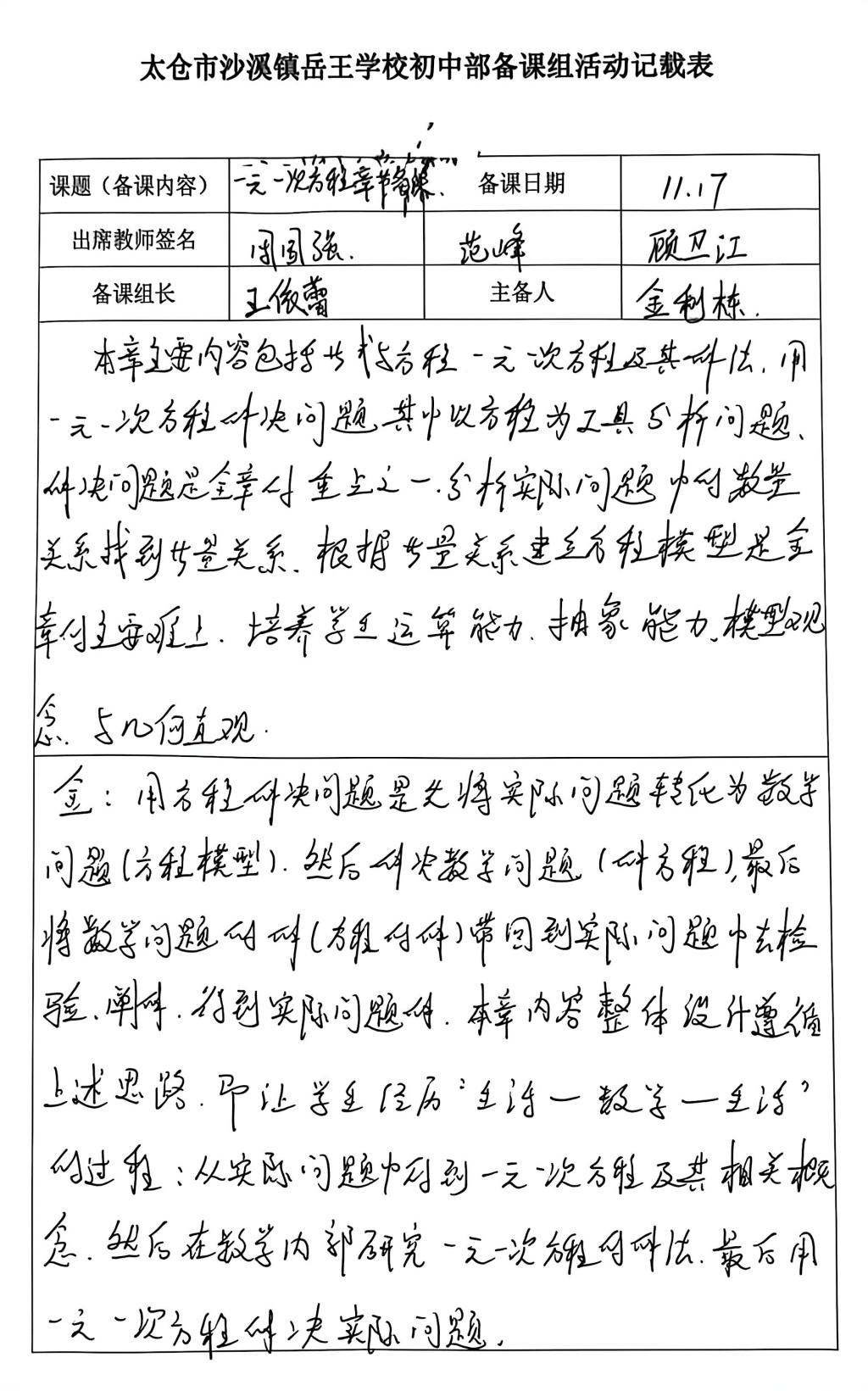 (品牌建设)构建生长课堂2025-2026第一学期,中学数学组第六次备课组活动——一元一次方程章节备课