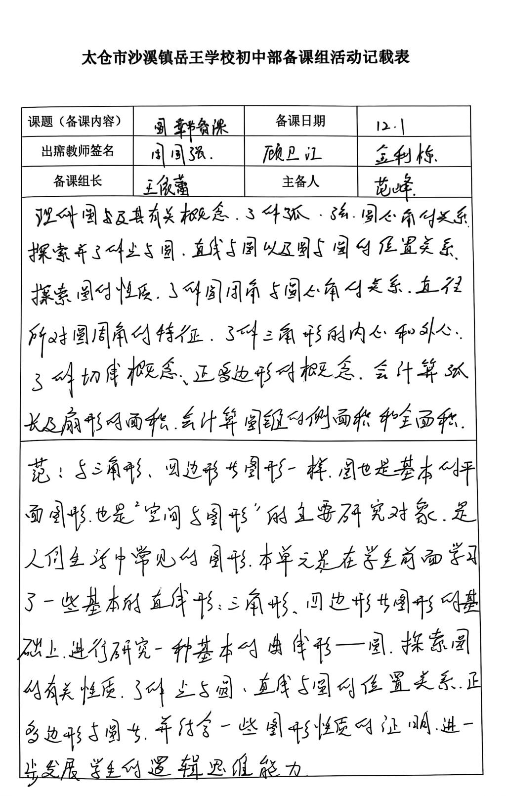 (品牌建设)构建生长课堂2025-2026第一学期,中学数学组第八次备课组活动——圆章节备课