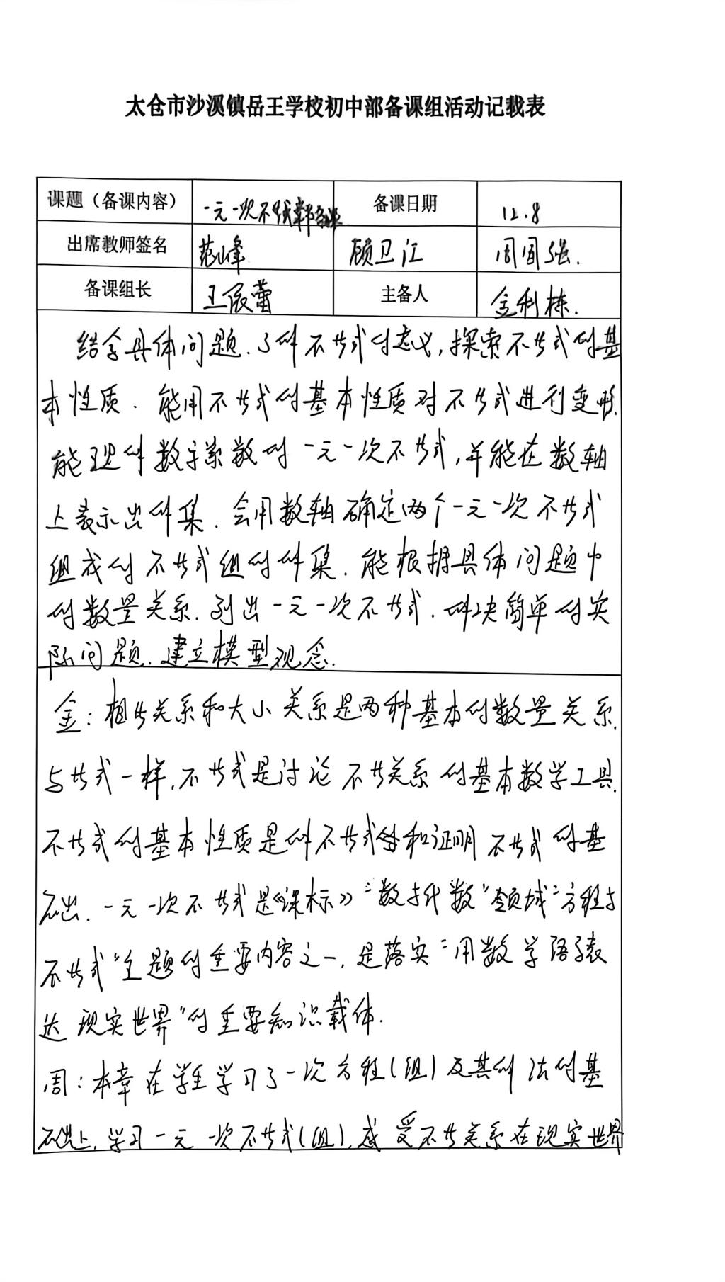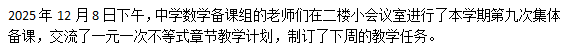 (品牌建设)构建生长课堂2025-2026第一学期,中学数学组第九次备课组活动——一元一次不等式章节备课