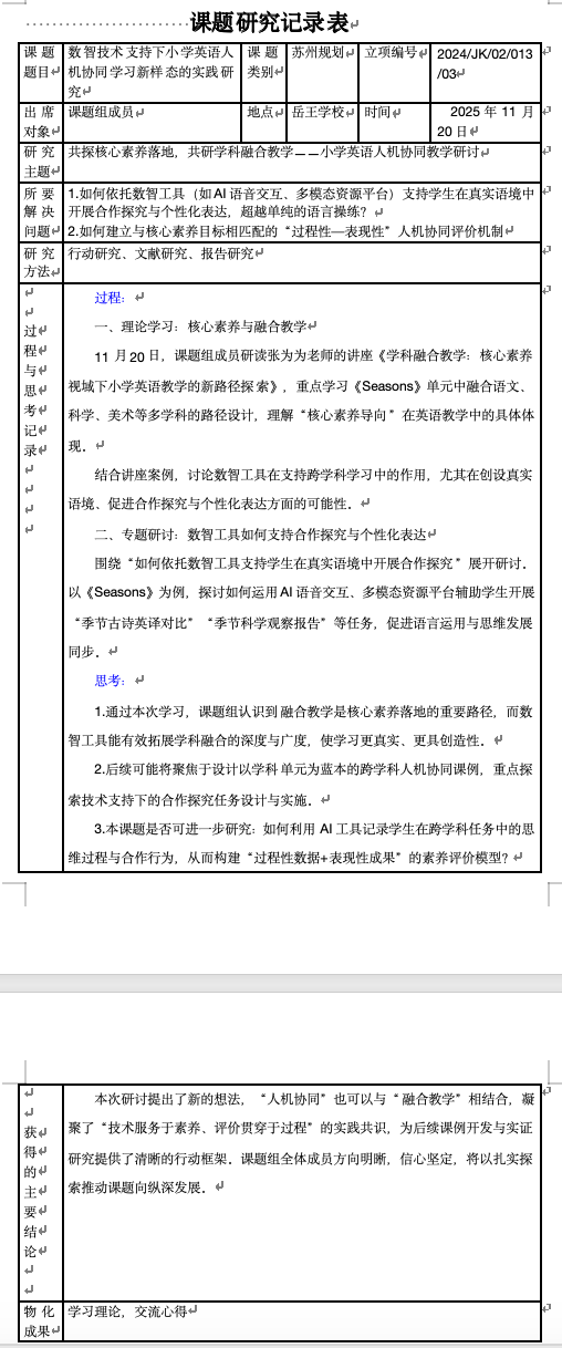 11月20日,课题组成员研读张为为老师的讲座《学科融合教学:核心素养视域下小学英语教学的新路径探索》,重点学习《Seasons》单元中融合语文、科学、美术等多学科的路径设计,理解“核心素养导向”在英语教学中的具体体现。